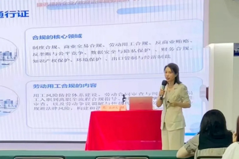 刘艳律师强调了企业合规是“企业发展的后盾与通行证”,阐释了合规作为可持续发展的内在要求和核心竞争力。她介绍了合规的核心领域,特别是劳动用工合规,并剖析了具体内容,包括招聘录用、劳动合同订立、薪酬福利、工时休假、社会保险、员工关系管理及解除终止劳动合同等节点的合规要点与风险防范。