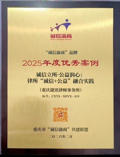 孙远强律师表示这份荣誉属于全体捷讯人,更属于信任我们的企业及社会各界朋友。诚信不是一日之功,而是日日精进的修行;公益不是锦上添花,而是刻入基因的担当。在2026年全面深化营商环境法治化进程中,捷讯将锚定‘千企合规增信赋能’目标,深耕企业合规治理前沿,以更精准的合规诊断、更系统的风险预警、更常态的法治陪伴,更扎实的合规体检、更温暖的公益普法、更高效的矛盾调解,把法律服务真正做成有尺度、有温度、有力度的时代答卷,持续让每一次法律服务都成为企业安心经营的坚实屏障,为重庆非公有制经济高质量发展注入法治动能。